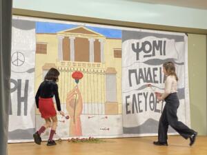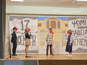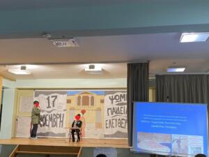 Στο Δημοτικό Σχολείο μας τιμούμε την επέτειο του Πολυτεχνείου, θυμόμαστε τους αγώνες των νέων για ελευθερία, δημοκρατία και ειρήνη. Με τραγούδια, ποιήματα και δραστηριότητες μαθαίνουμε την αξία του σεβασμού και της αλληλεγγύης. Η μνήμη γίνεται μάθημα ζωής για όλους μας.